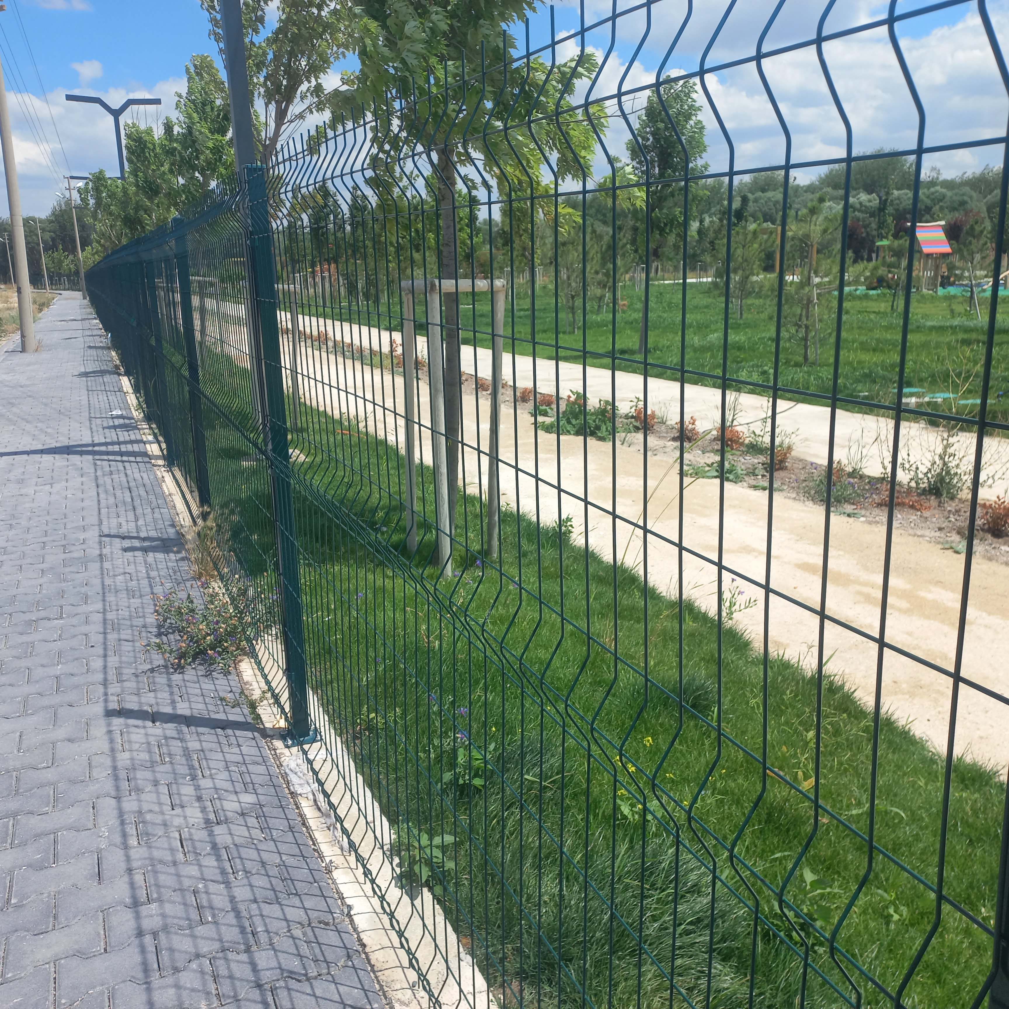 3. Kamu Alanları: Parklar, spor sahaları ve okullar gibi yerlerde hem koruma hem de düzenli bir görünüm için panel çit tercih edilmektedir.